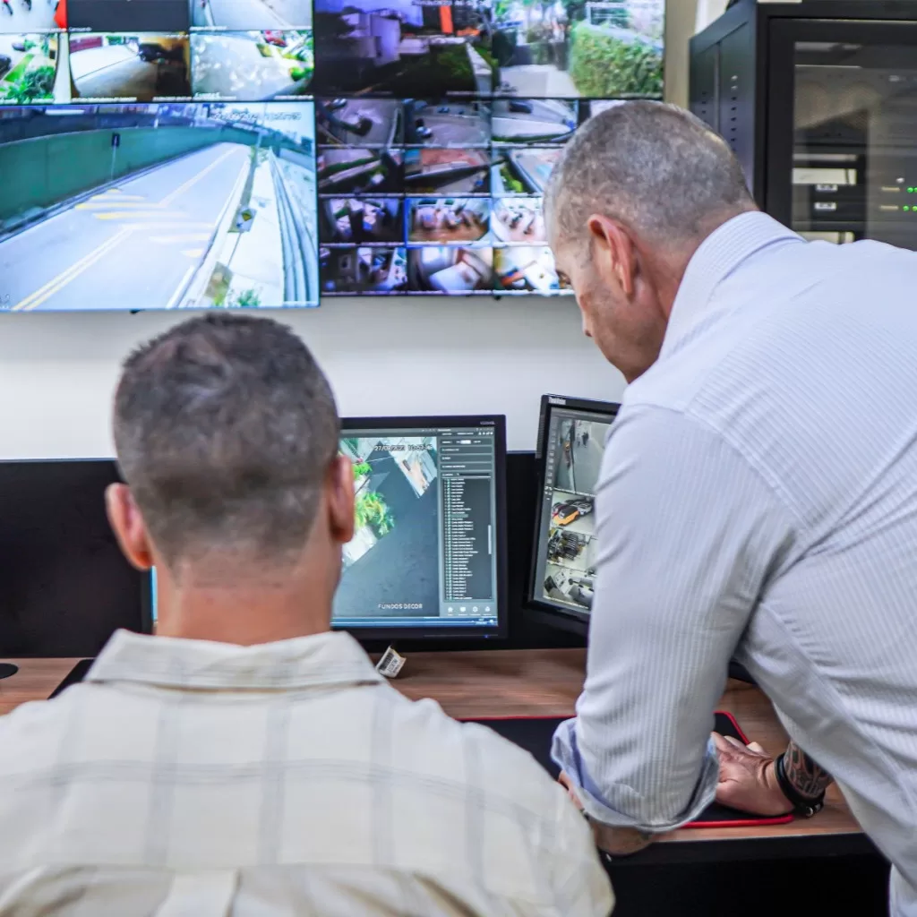 No monitoramento dedicado, um operador acompanha continuamente câmeras e alarmes do cliente, utilizando inteligência artificial, cercas e rondas virtuais.